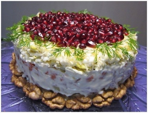 4 слой - грецкие орехи (мелко натереть на терке или размельчить в блендере);