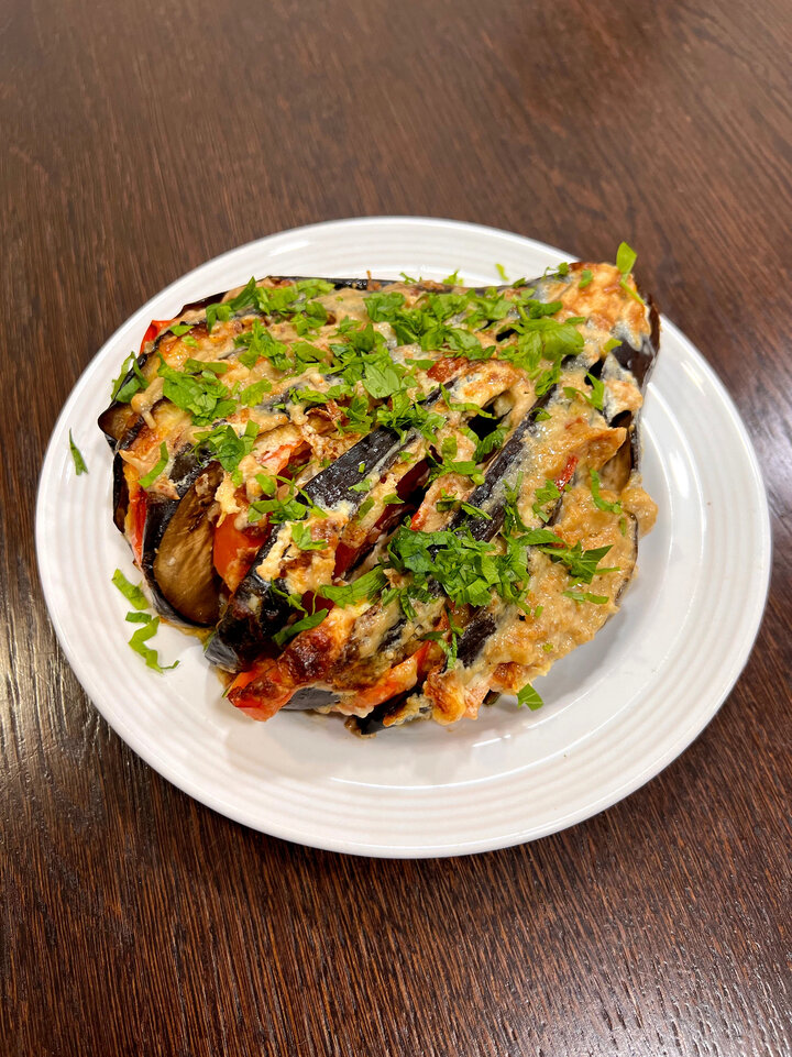 Ставлю в духовку на 20 минут (180 градусов). Затем накрываю фольгой - и еще минут 30-35 (до готовности). При подаче посыпаю зеленью.
