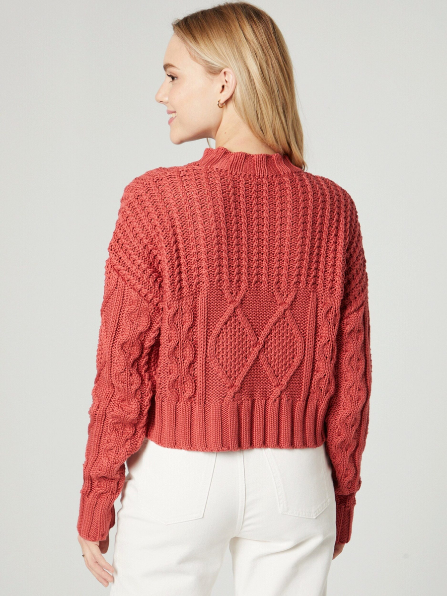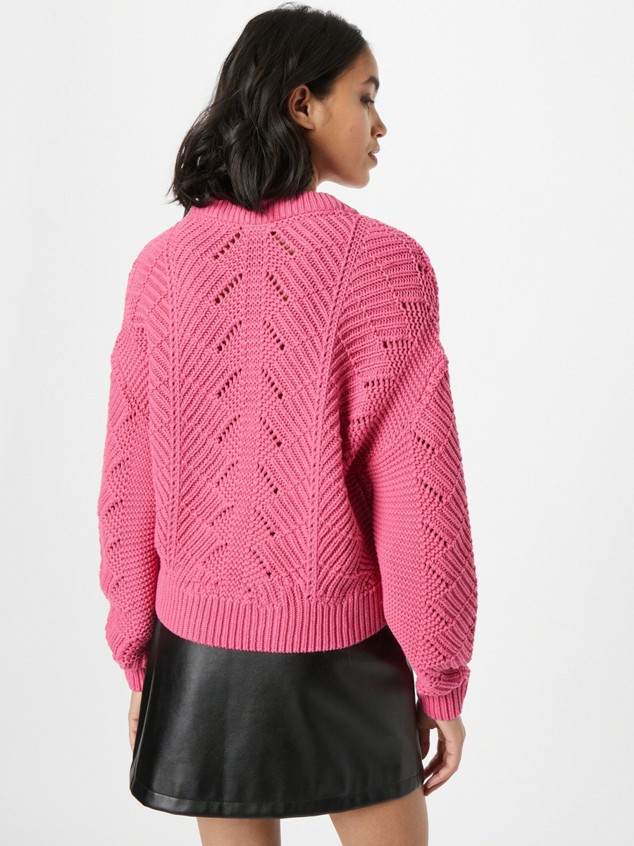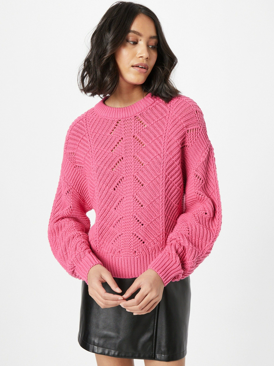 Пятый свитер - яркого розового цвета, с интересным и неизбитым узором, но с обычным и простым покроем.