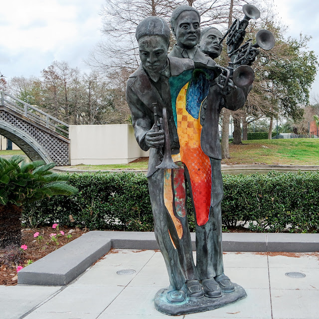 Самые различные скульптуры,планшетки, с историческими повествованиями развития джазово-духового искусства луизианы.
