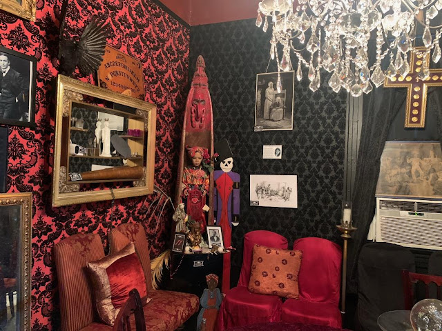 Это ритуальная комната, где сидит гадалка. Предсказывает судьбу по картам ТАРУ.