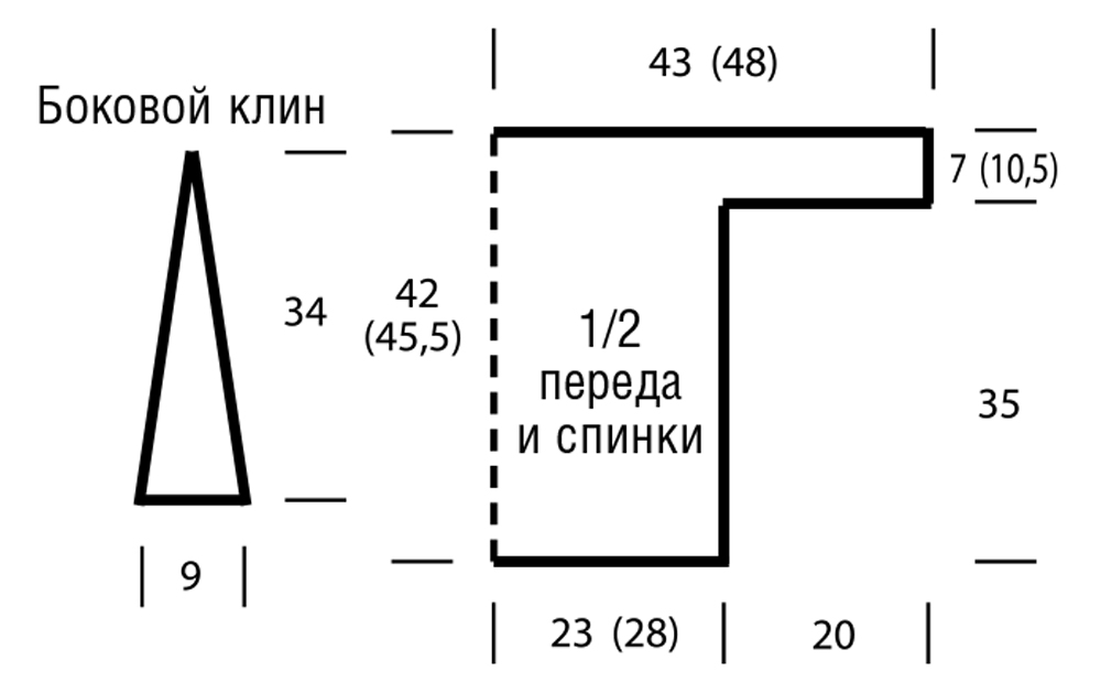 Одновременно для формы клина подчеркнуто убавить с обеих сторон в каждом 12-м ряду от начального ряда 7 x 1 п. = 5 п.