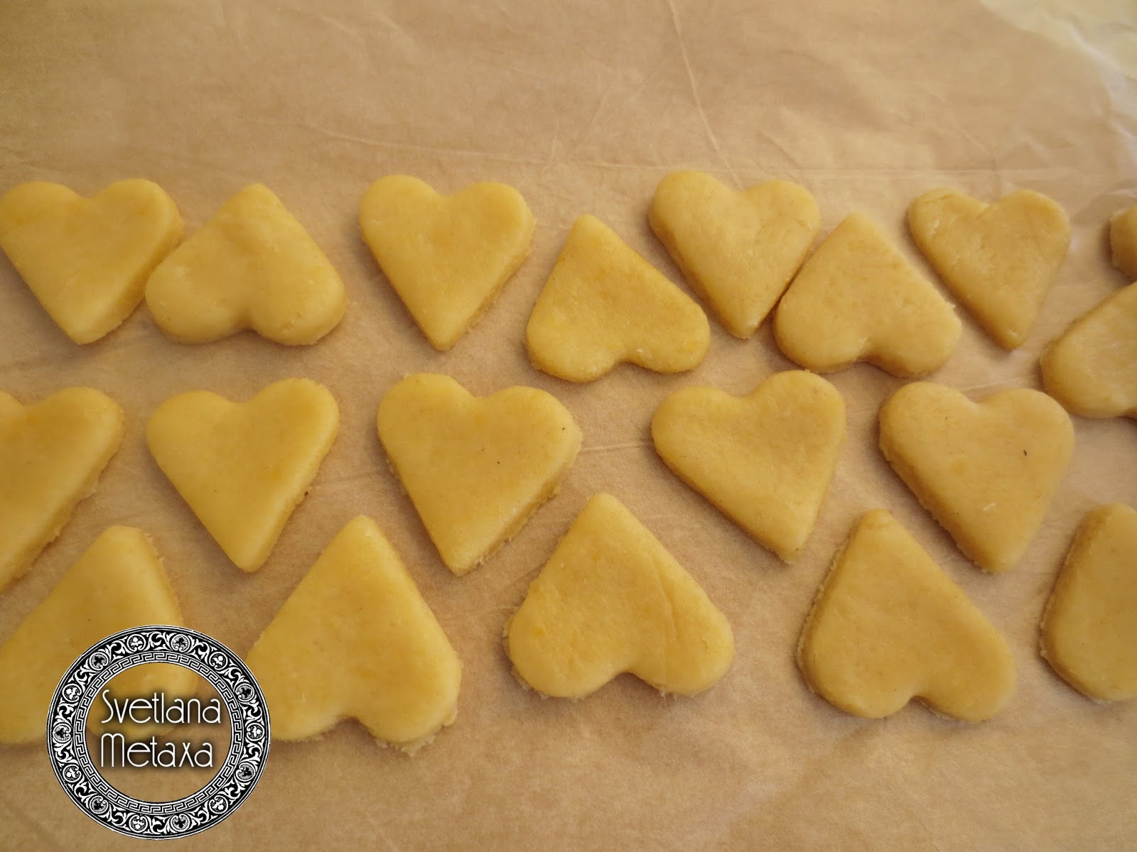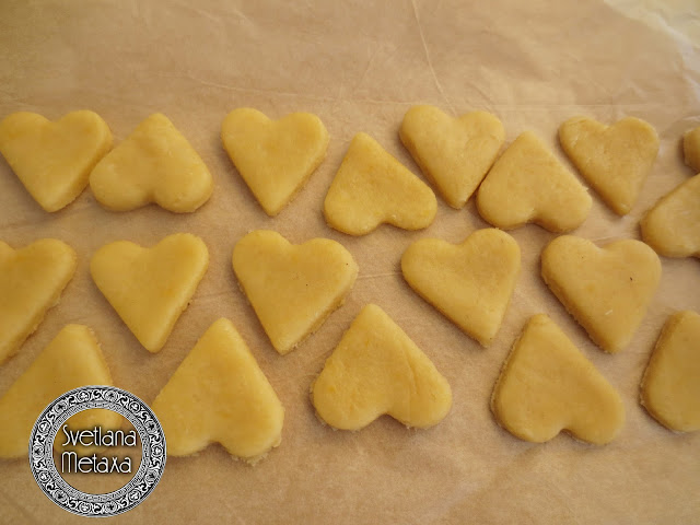8.Остатки теста раскатать в пласт, вырезать сердечки.