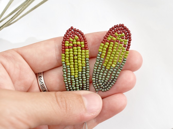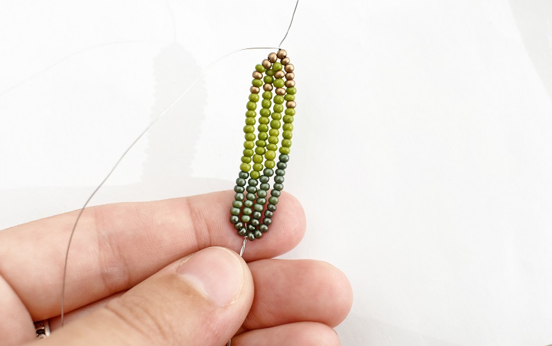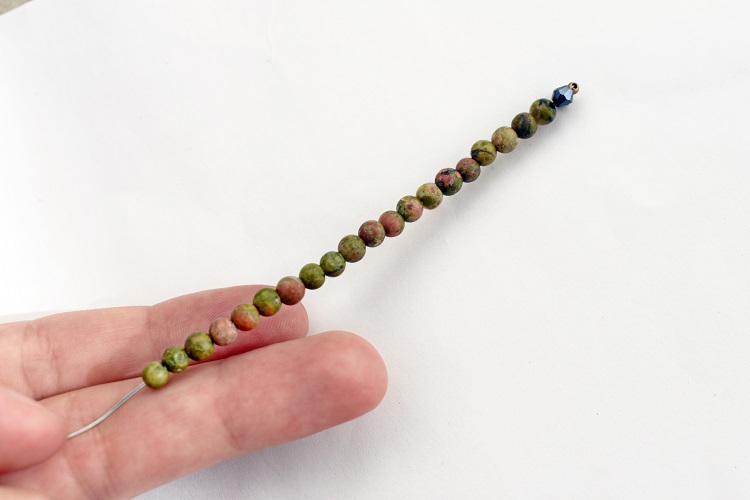 На два конца вместе нанизываем 20 бусинок унакита и в конце одну бисеринку.