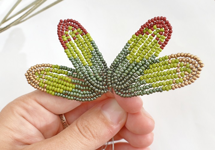 Для крыльев я взяла несколько цветов бисера, Вы можете брать количество цветов на свое усмотрение.