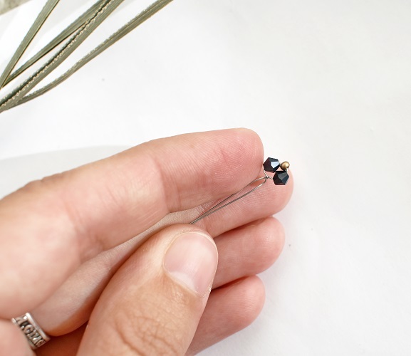 Отрезаем проволоку, нанизываем на середину биконус, бисеринку, биконус и скручиваем вместе.
