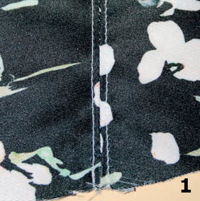 1. Стачать боковые срезы полей. Разутюжить швы и расстрочить их, прокладывая строчки на расстоянии 3-5 мм от швов (фото 1).