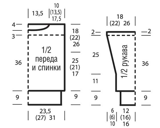На высоте спинки закрыть оставшиеся по 16 (22) 28 п. плеч.