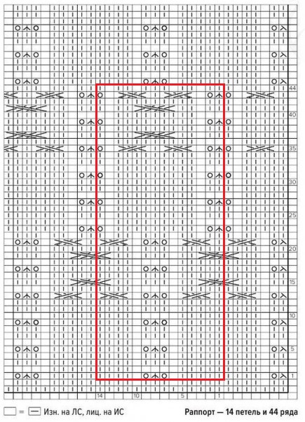 Раппорт узора состоит из 14 петель + 2 кромочные
