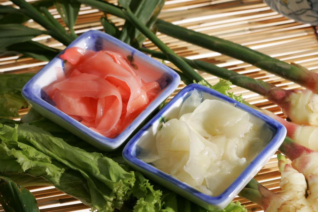 Очень тонко нарезанный молодой корень, замаринованный в смеси сахара и рисового уксуса, японцы называют «гари» или «шин-шога» и обязательно подают ко всем роллам и суши. Ароматная, слегка острая и одновременно сладковатая приправа выполняет несколько функций. Главная из них – это очистить вкусовые рецепторы и освежить восприятие между поеданием разных роллов и суши. Это позволит в полной мере ощутить все нюансы вкусов.