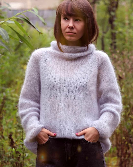 А как красиво будет его завязать рукавами на поясе... или на шее - вот чтобы наготове был, но так стильно будет! Вяжи его именно таким - мохеровым и обязательно своего любимого цвета! Фима, дорогая - это же наш любимый джинсовый стиль - ты помнишь? Давай воплотим, шерсти свои запасы! И еще он вяжется очень быстро - представляешь, как будет классно и вязать - и быстро так нарядиться к вечеру у камина в домике у тебя в селе????