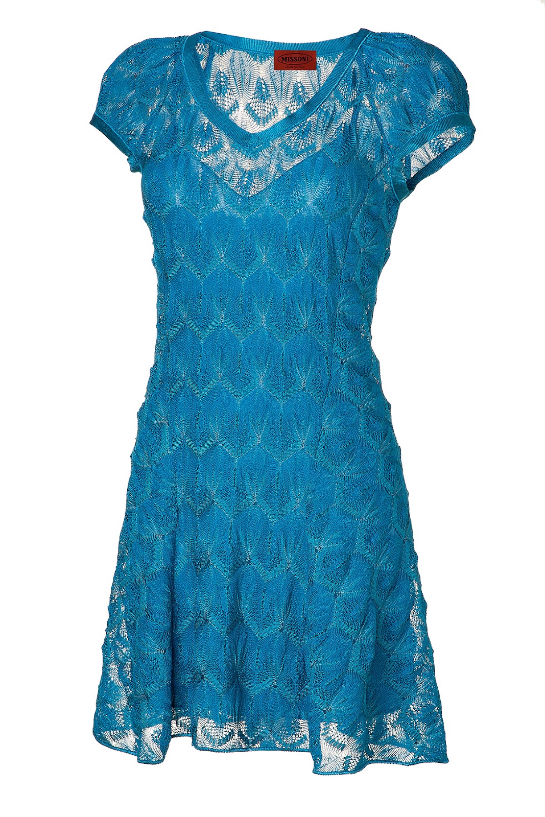 9. Turquoise V-Neck Dress. Бирюзовое платье с ажурным узором.