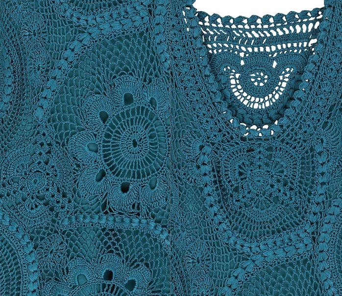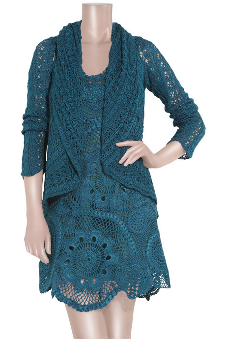 Костюм состоит из кардигана, связанного спицами, и платья, связанного крючком