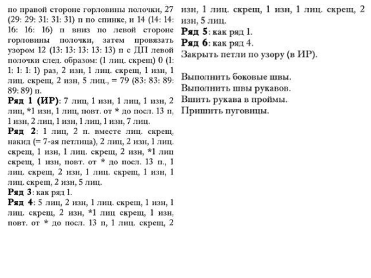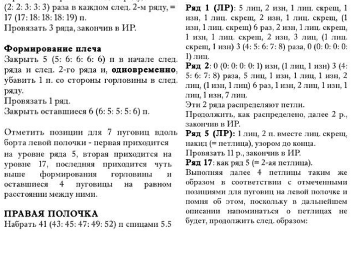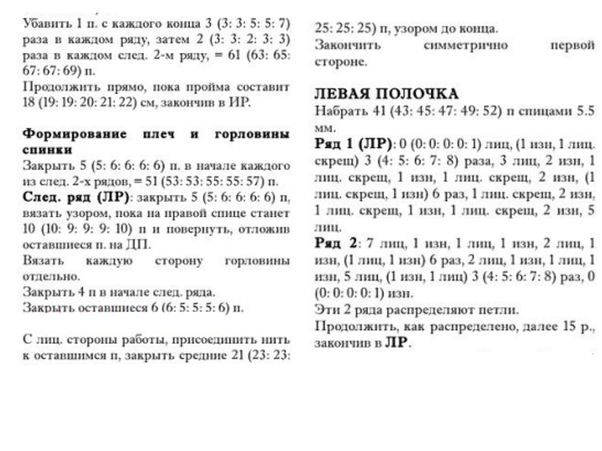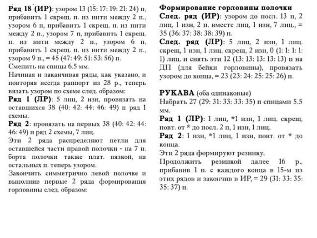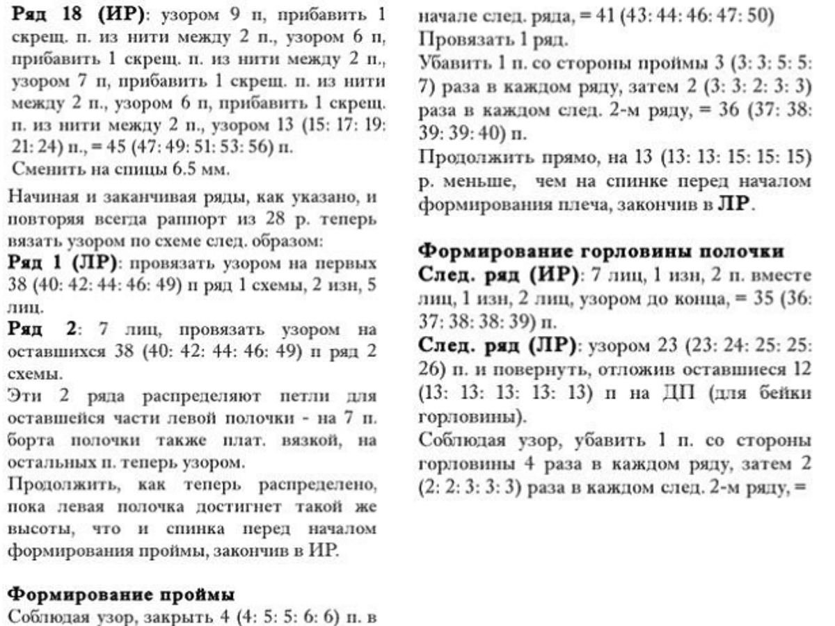 Важно: узор спинки складывается из 2-х частей, правой и левой, и трёх центральных петель, которые обозначены на схеме правой полочки.