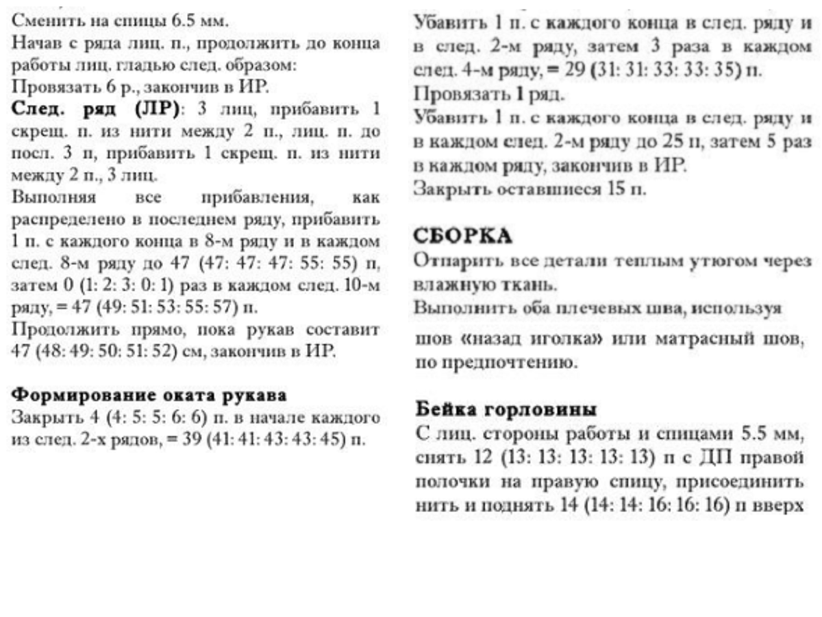 15 петель и 21 ряд спицами № 6,5 = 10 х 10 см.