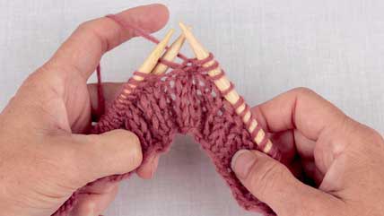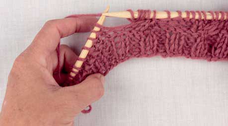 сдвигать эти 2 петли, связанные лицевой гладью, с обеих сторон на 1 петлю в каждом ряду. С правой стороны провязывать поочередно 4 изнаночных и 6 лицевых.