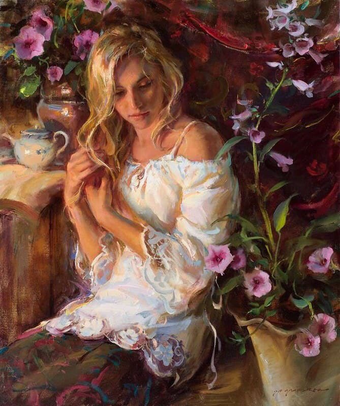 Заметим, что Герхартц предпочитает писать с натуры. На его взгляд только так можно передать красоту окружающего мира. Иногда ему приходится использовать фотографии – дети и домашние питомцы не любят позировать. Однако при этом Дэн непременно изучает и фиксирует палитру оттенков будущего портрета, формируя тот образ, который станет атмосферой будущего полотна.