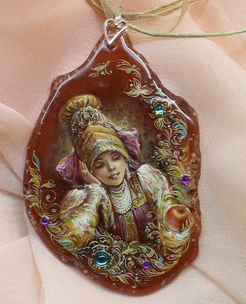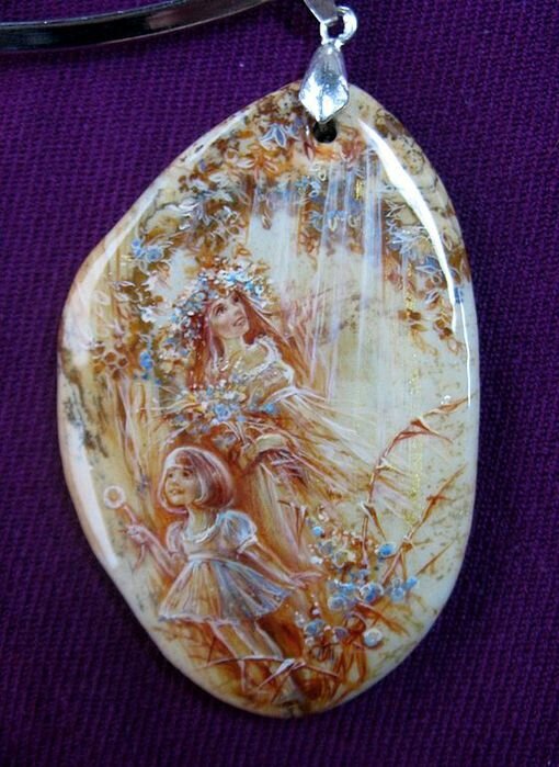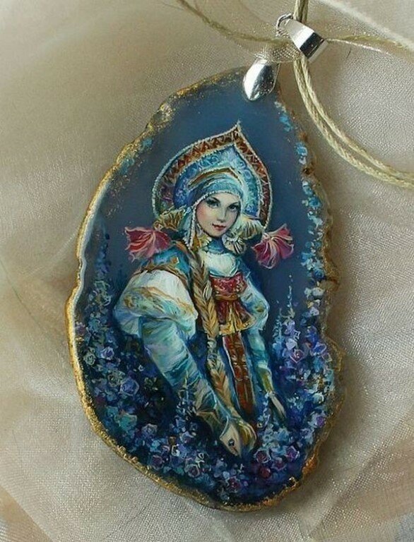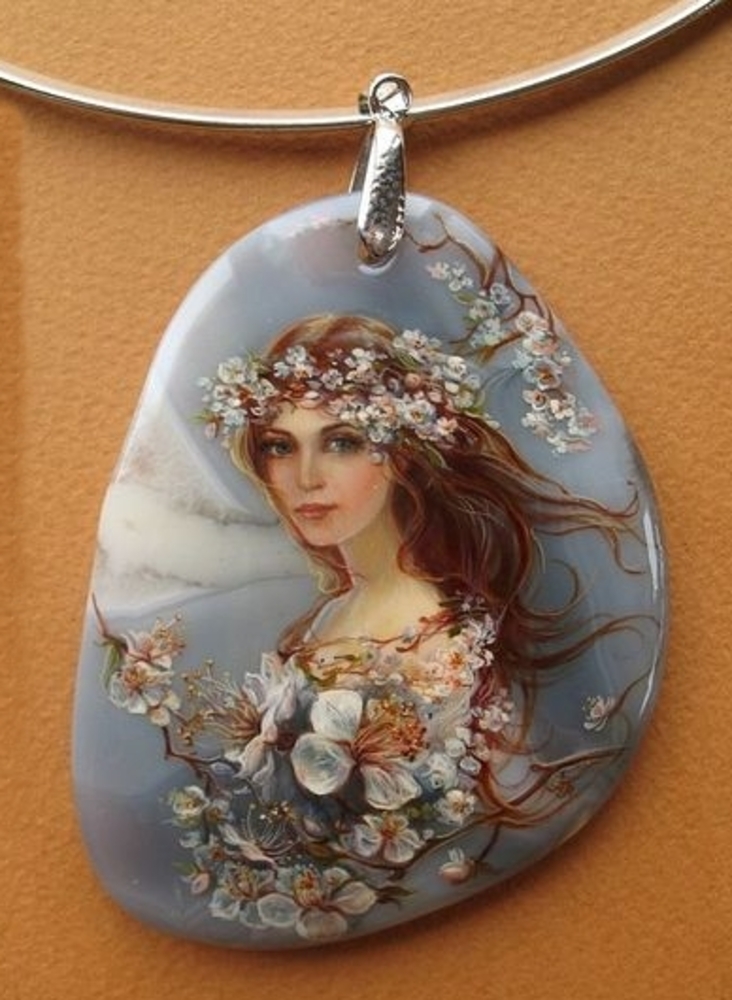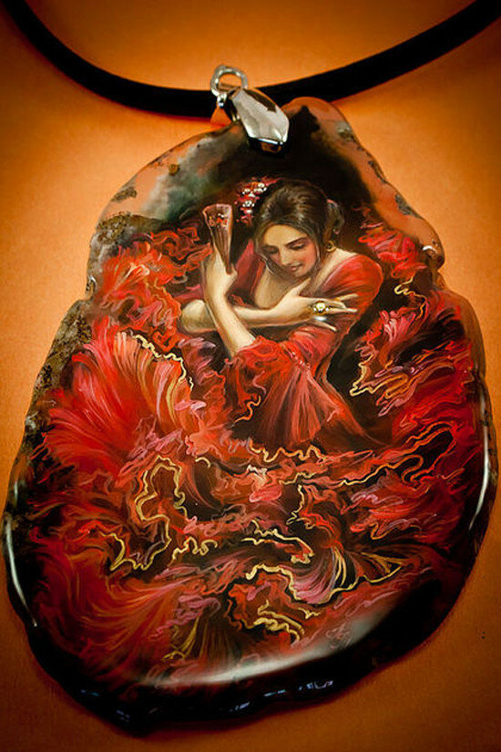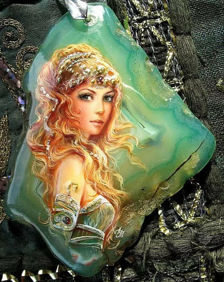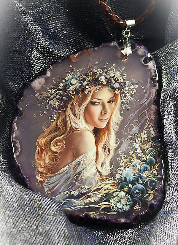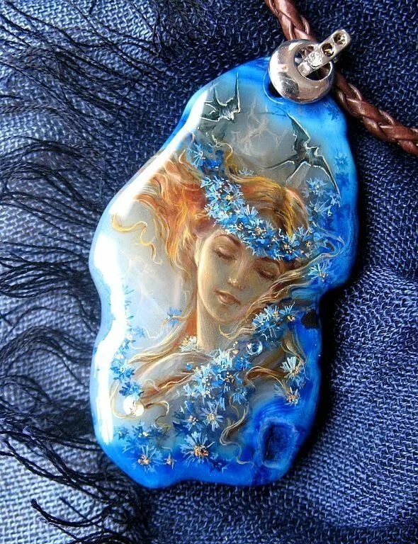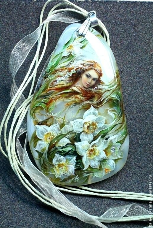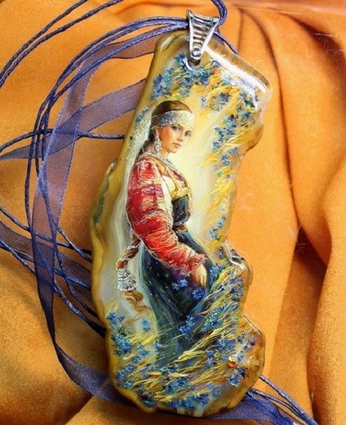 Естественная простота образа, безграничная глубина и обаяние в каждой работе Анны Талевой. Теряются слова, стоит остановить взгляд… и уже не отвести…, не обмолвиться. И камень и рисунок выступают абсолютно в унисон! Очень чувственные, красивые, оригинальные изделия!