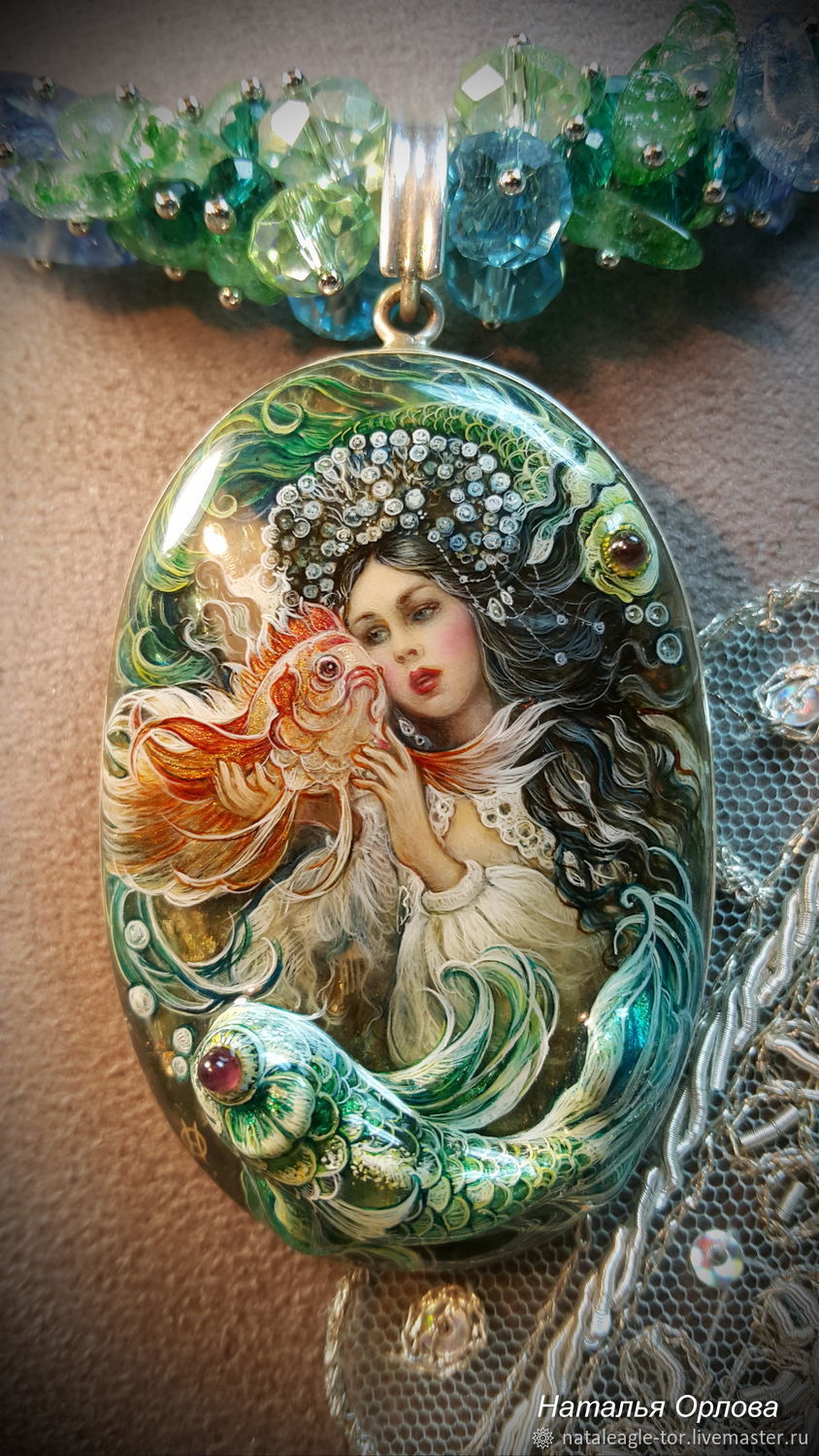 Сегодня полюбуемся на кулоны необыкновенной красоты, созданные Натальей Орловой . Они уникальны своей неповторимостью, все ручной работы и несут в себе несравнимый с фабричной вещью энергетический посыл! Это очень нежные, радужные, украшения. Настолько гармоничные образы рождаются под её кистью, что хочется любоваться ими , позабыв о времени!