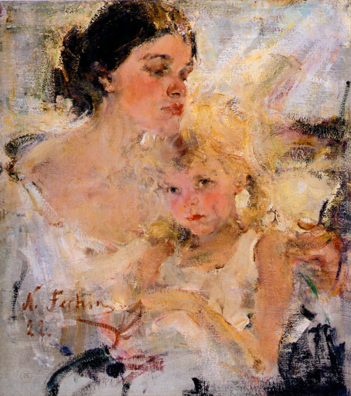 Он «сделал себя сам». Разорившиеся и разведённые родители ничем не могли помочь своему даровитому сыну, когда тот, окончив художественную школу и поступив в столичную Академию художеств, влачил предельно бедняцкое существование. Но юноша не сдавался, без устали обучаясь и экспериментируя. И в конце концов Её Высочество Удача улыбнулась ему широко и приветливо. Молодого Николая Ивановича Фешина стали привечать в богатых семьях Петербурга. В нём наконец-то разглядели великолепного портретиста! Премия Куинджи, орден Св. Станислава, участие в престижнейших выставках Российской Империи и Европы стремительно вознесли его в «высший свет» и вплоть до самых последних лет жизни заставили позабыть «прозябание» на хлебе и воде.
