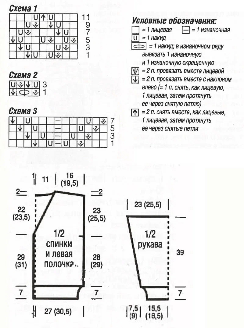 Внимание. При выполнении прибавок и убавок следить за тем, чтобы число накидов и провязанных вместе петель внутри узора совпадало.