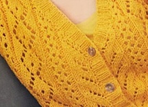 Пряжа (100% биохлопка; 90 м/50 г) — 500 (600) г желто-оранжевой; спицы № 4,5 и 5,5; круговые спицы № 4,5; 5 пуговиц диаметром 18 мм.