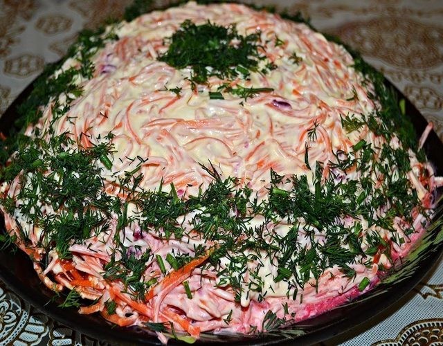5 слой - готовая морковь по-корейски ( слегка порезать,если длинная)