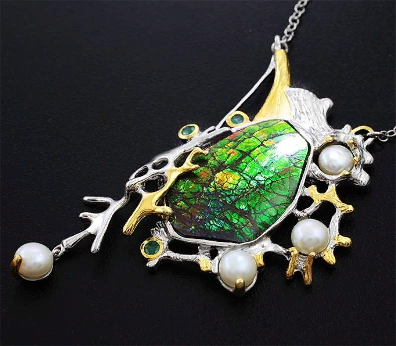 Аммониты вымерли из-за того, что море Биопа отступило с территории Западной Канады и с большей части территории Северной Америки, морское дно поднялось вверх, в результате образовались современные пастбища. ПРЕВРАЩЕНИЕ В ДРАГОЦЕННОСТЬ Находясь под землей, аммониты превратились в разноцветные окаменелости. Какие-то вещества изменили цвет раковины от светло-жемчужного до тех насыщенных цветов, которые мы видим сегодня.