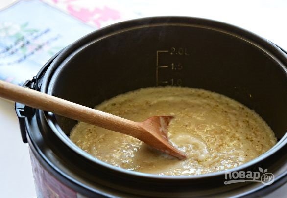 4. Выложите в чашу кусочек сливочного масла и установите программу «Молочная каша» на 10 минут.