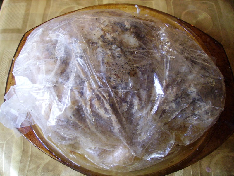 За это время лук растает, превратившись в бульон. Томлёная грудка станет сочной. Можно оставить её в бульоне, он в холодильнике превратится в желе. А можно хранить грудки в фольге.
