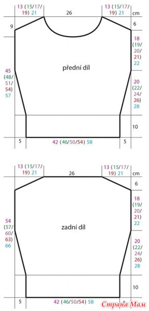 На мой взгляд, при вязании топа на полную фигуру, не стоит делать боковых скосов. Резинку лучше вязать сразу на ширину линии груди. Если вязать по представленной выкройке, то линия бедер будет подчеркнута резинкой, а животик будет выпирать и выглядеть не очень красиво.