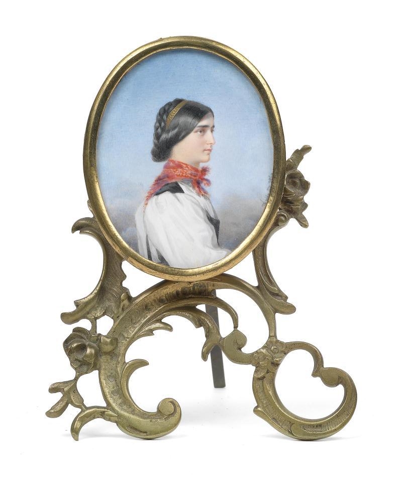 Портрет молодой женщины с тёмными косами в костюме, 1862