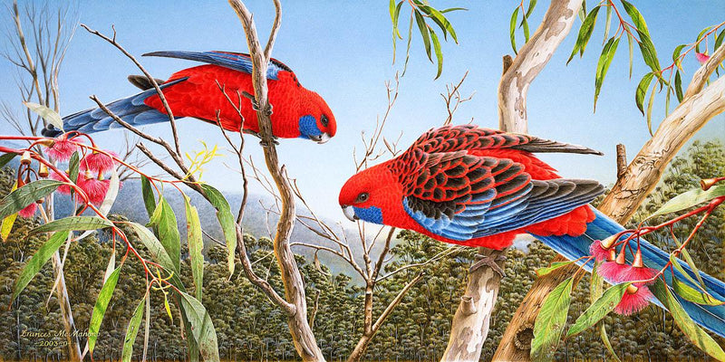 Австралийская художница Фрэнсис МакМахон(Frances McMahon)создаёт великолепные реалистичные картины с мельчайшими деталями, изображающие австралийских птиц. «Я рисую птиц с пяти лет, — говорит она, — и тогда я решила, что это будет делом всей моей жизни. С тех пор запечатление красоты наших местных видов птиц стало моей страстной одержимостью». Она рисует акварелью с небольшими вкраплениями гуаши, и это ей хорошо удаётся. «Я всегда рисовала акварелью, — говорит она. — Это непростая техника, но она позволяет мне добиваться высочайшего уровня детализации, к которому я стремлюсь. Она также создаёт полупрозрачность, которую трудно добиться с помощью других техник».