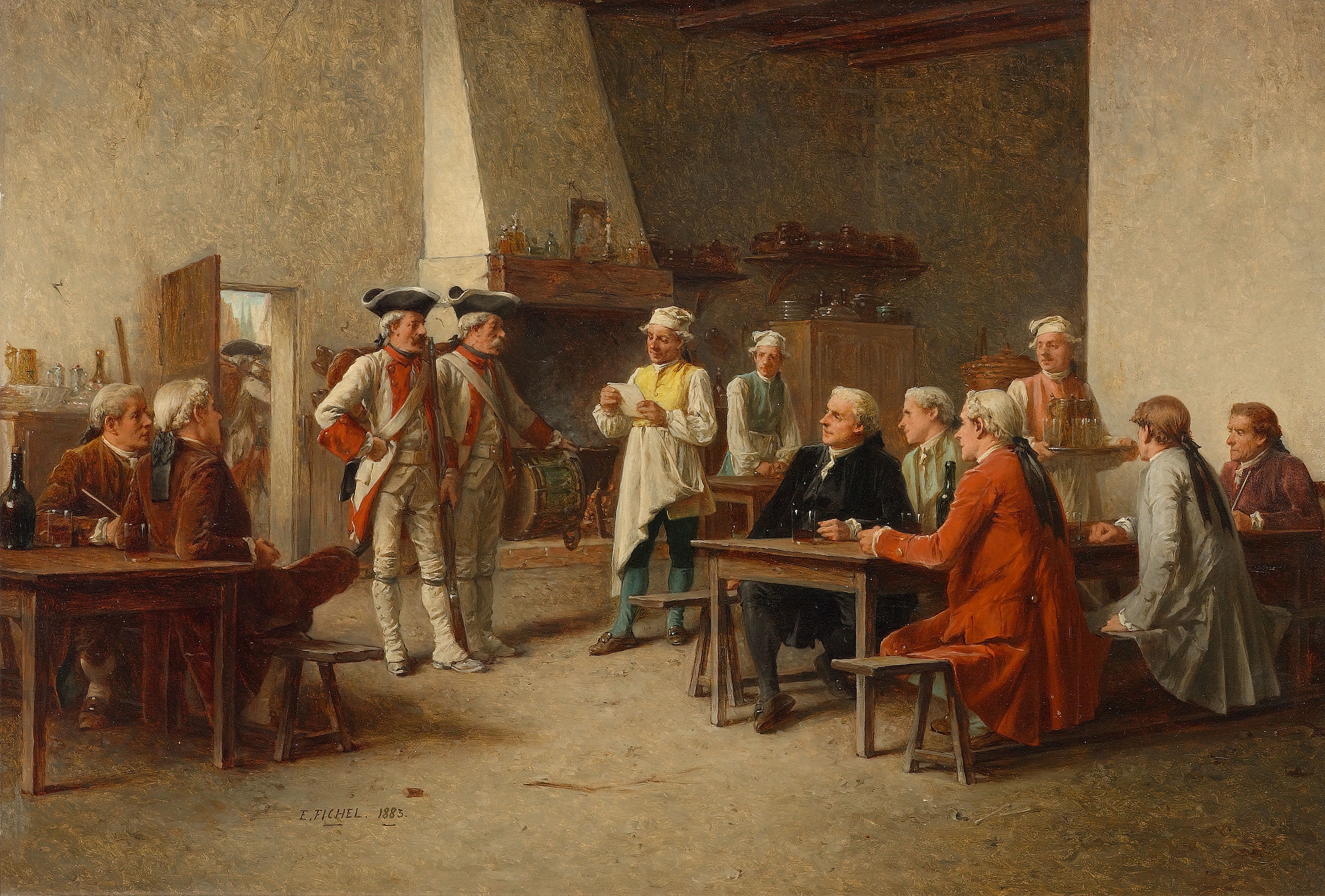 Странствующие менестрели развлекают постояльцев в гостинице, 1880