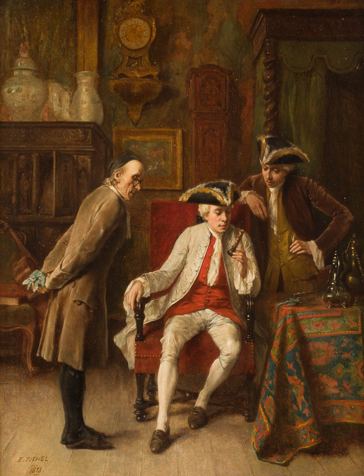 Интерьер в стиле рококо с играющими в шахматы мужчинами, 1884