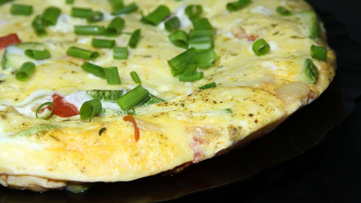 Чуть погодя посыпаем сверху сыром и зеленью. Можно добавить креветки, сосиски всё что душенька желает !!. И омлет ГОТОВ!