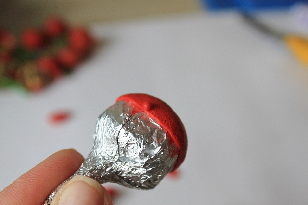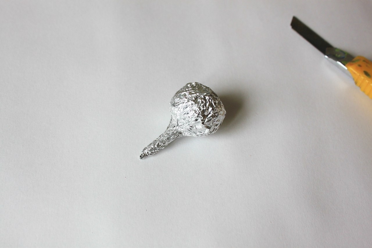 Из фольги делаем такую круглую штучку, размером с пятирублевую монетку, делаем ножку, чтобы удобнее было держать