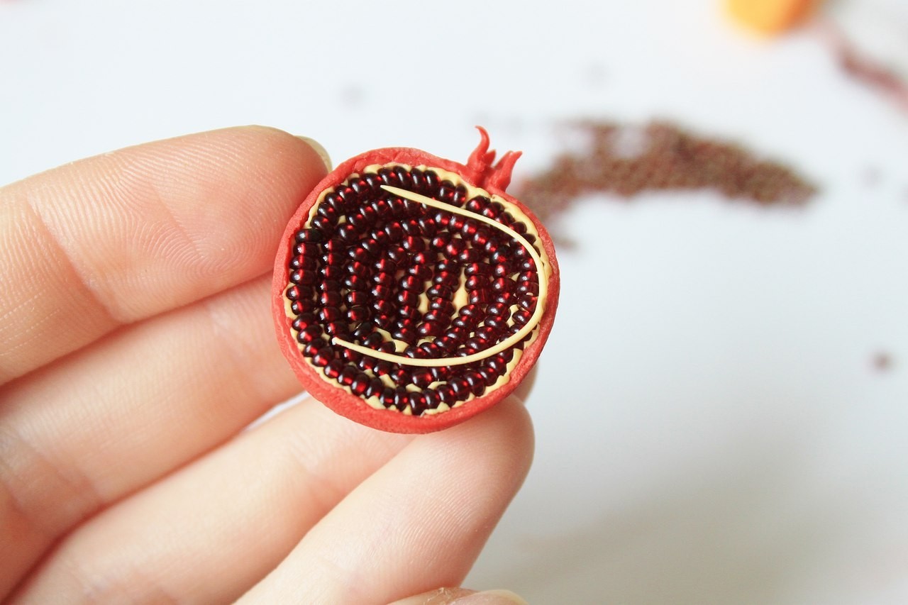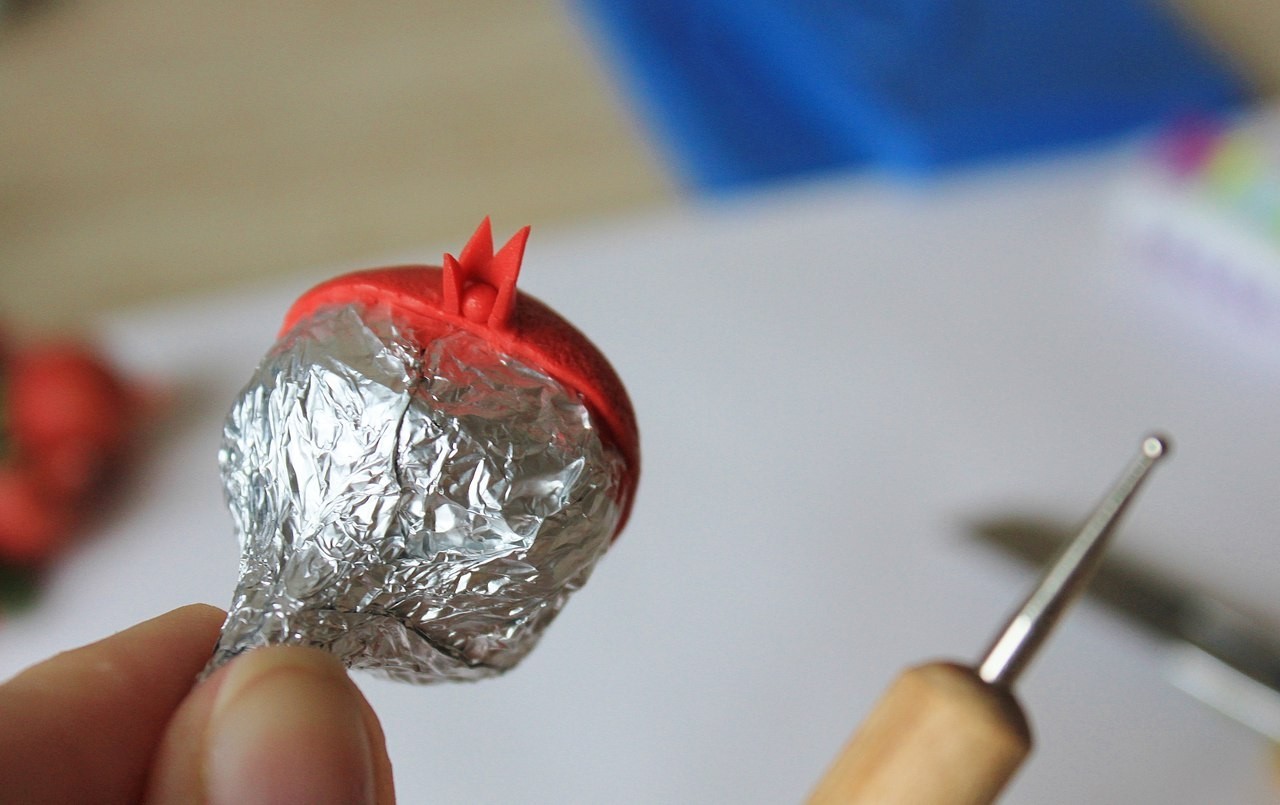 Декорируем наш гранат светло-желтой глиной и отправляем опять запекать на полчаса.
