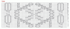 Узор из кос (из 47 п.): вязать по схеме, на которой приведены только лиц. р., в изн. р. все петли вязать по рисунку или как указано, лиц. скрещ. вязать изн. скрещ. Повторять с 1-го по 36-й р.