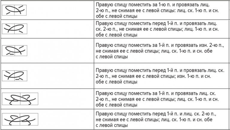 2 лиц. вм. ск. — провязать две петли вместе лицевой скрещенной (за заднюю стенку)