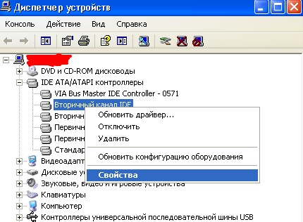 Первичный и Вторичный каналы IDE → заходим поочередно в свойства этих каналов (правой кнопкой на канале, строка «Свойства»), в закладку «Дополнительные параметры»,