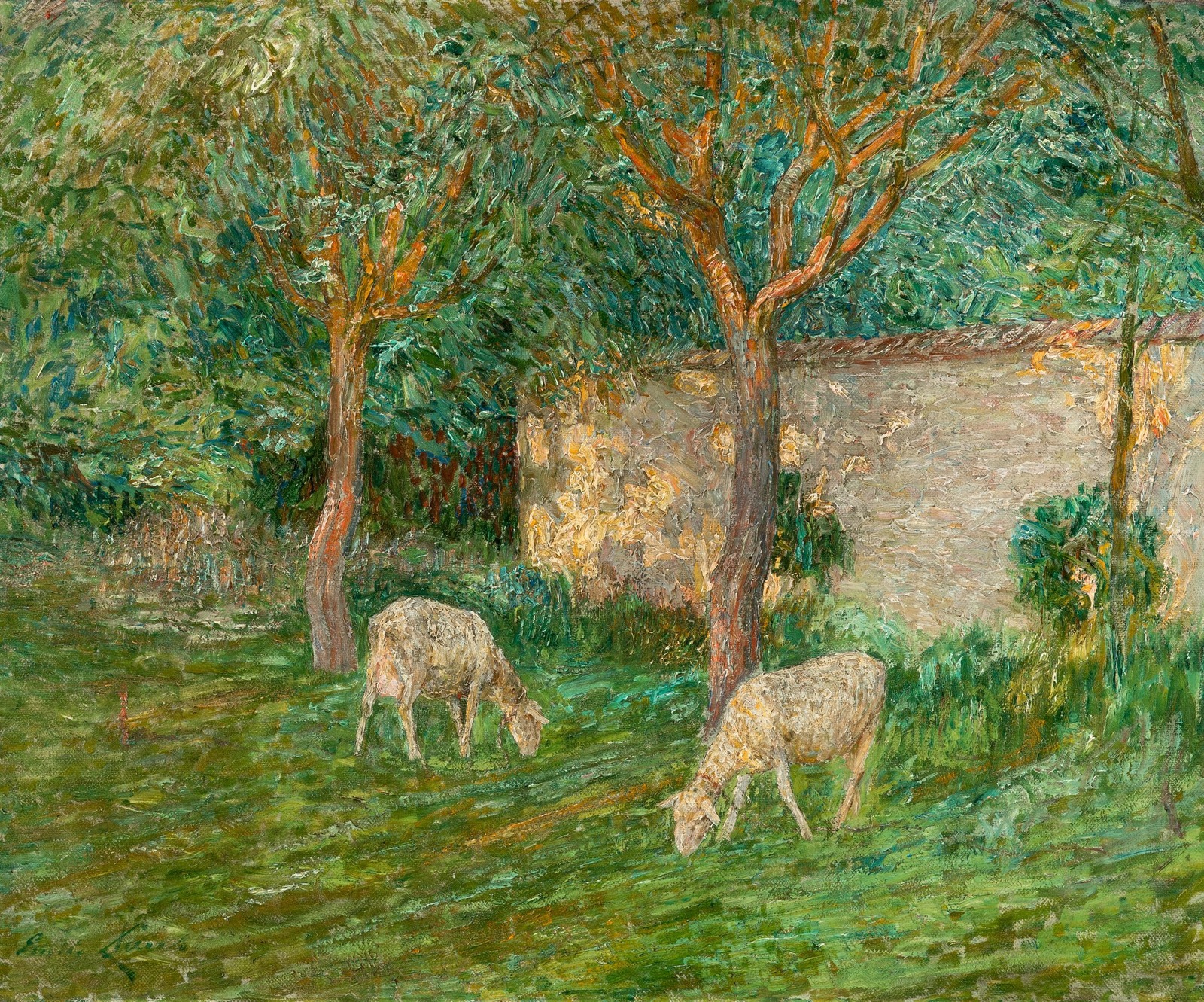 1911_Солнечный фруктовый сад с овцами (A sunny orchard with sheep)_59 x 72_х.,м._Частное собрание