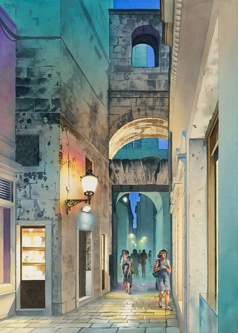«Город для меня – это поток жизни, которая движется, меняется, забывается и постоянно замещается новым. Чем выше цивилизация – тем быстрее темп жизни. Города и мегаполисы, это центры культуры, они обладают личной историей и приобретают портретные черты. Большая часть моих работ создана под завораживающим влиянием среды городов, увиденных мной.»