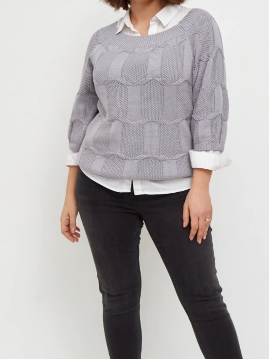 Делюсь очередной "добычей" из интернет-магазина. Модный, стильный, универсальный пуловер с крупным узором и рукавом 3/4.