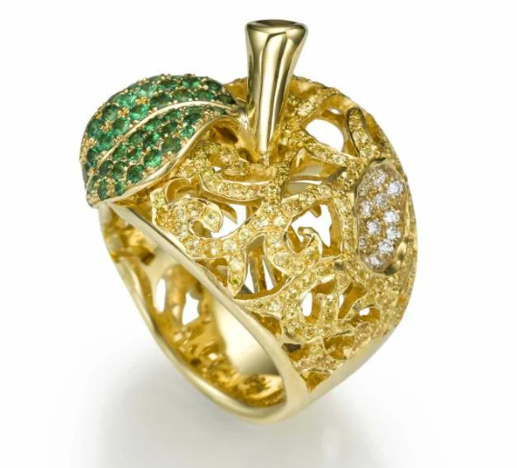 Теперь посмотрите на удивительное кольцо. Оно появилось на свет еще в 2012 году, однако и сегодня поражает красотой. Это яблочко буквально можно надеть на палец: