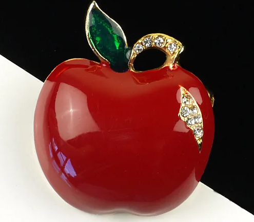 Кольцо от итальянских мастеров в виде яблока. Начнем с прелестного зеленого яблока, представляющего из себя брошь-яблоко из желтого золота с демантоидами и желтыми бриллиантами. Оно роскошное и красивое. На любой выход. Ну или почти на любой. Полюбуйтесь: