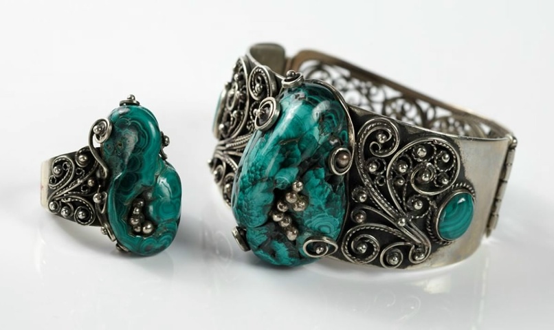 Малахит в серебре