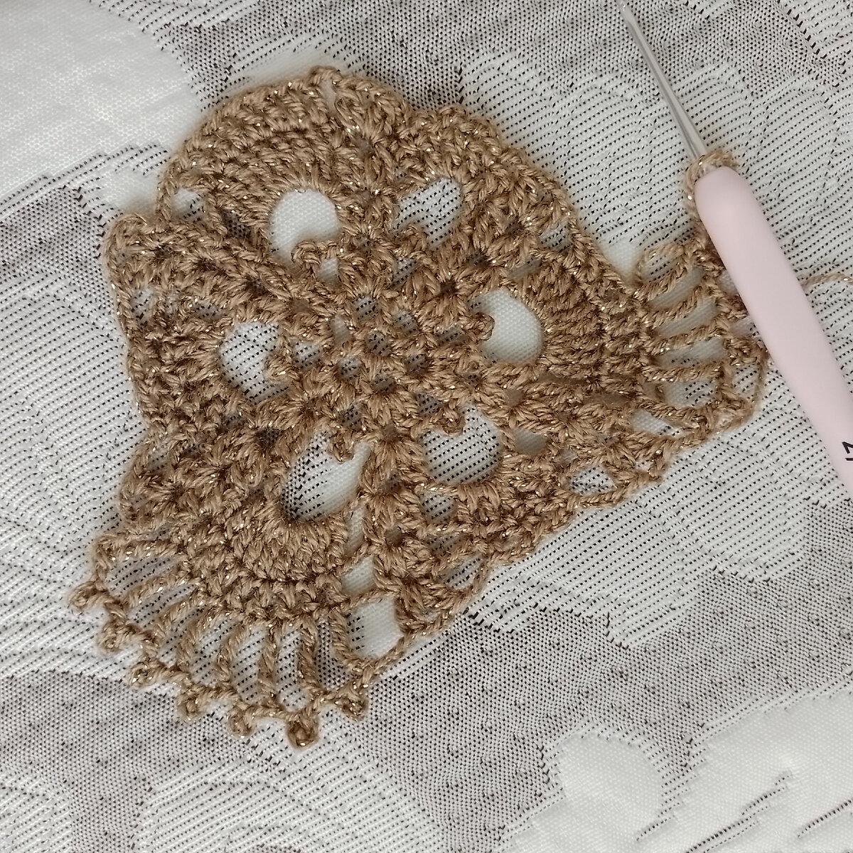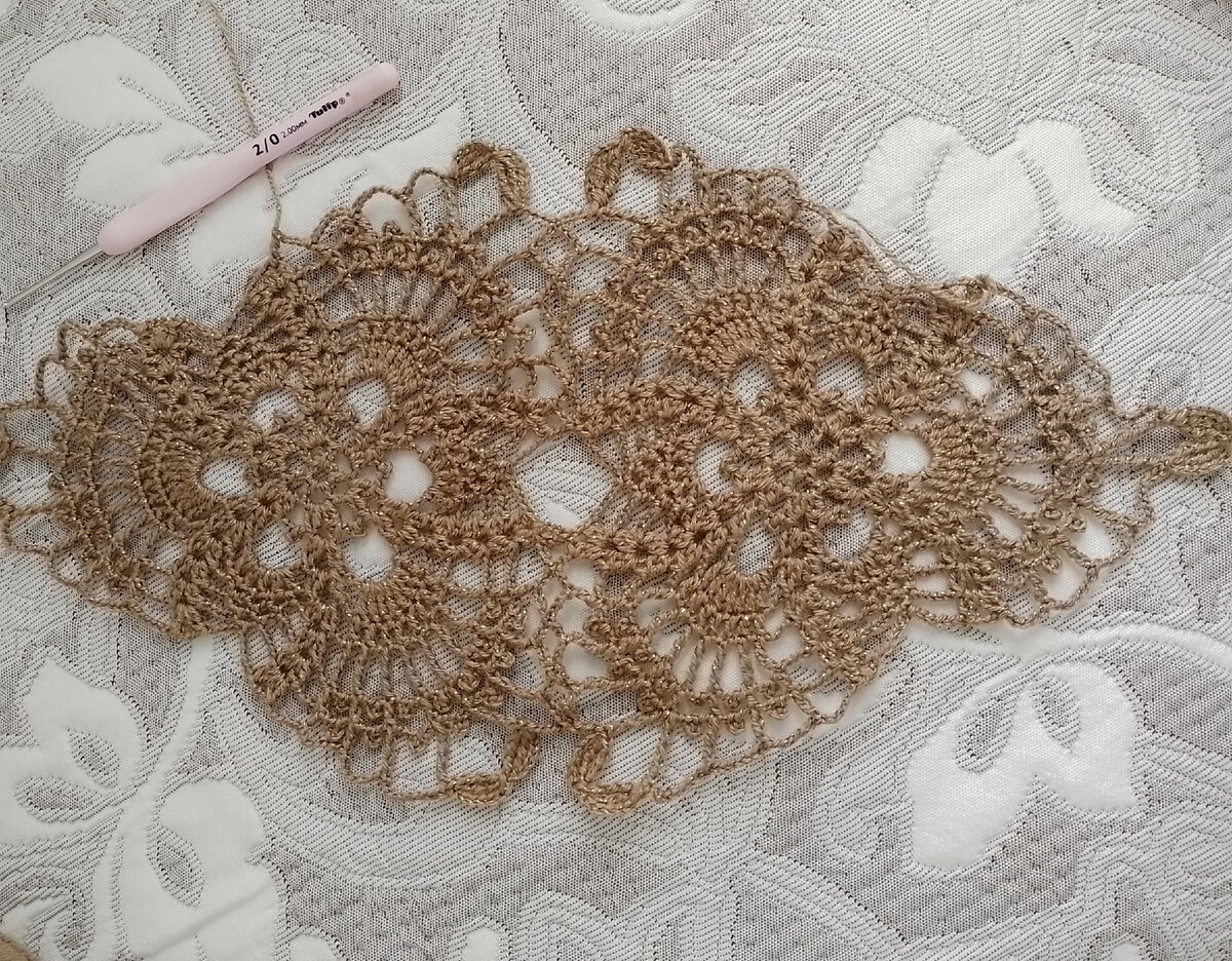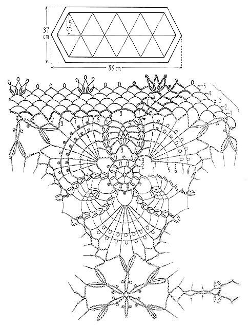 Салфетка собрана из 6 треугольников (мотивов) и соединяется маленьким изящным цветочным мотивчиком.