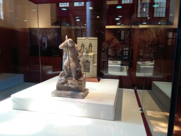 Единственным декоративным элементом фасада Дома Ботинеса является скульптура Георгия Победоносца, созданная другом Гауди — Лоренсом Матамалой. Гипсовая модель скрупулезно формировалась на стройке храма Святого Семейства. В 1951 году во время реставрации внутри нее рабочие нашли свинцовую трубу с оригинальными планами, завизированными Гауди.