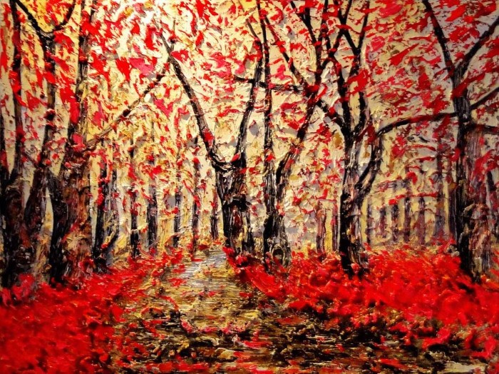 Работы выполнены маслом на холсте там, где текстура должна имитировать поверхность, свойственную сельской местности, и акрил там, где воплощение его идей требует наличия изогнутых линий.